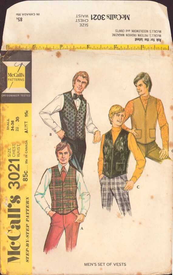 Mccall S 3021 Sewing Pattern Men S Vests Size 34 36 Etsy
