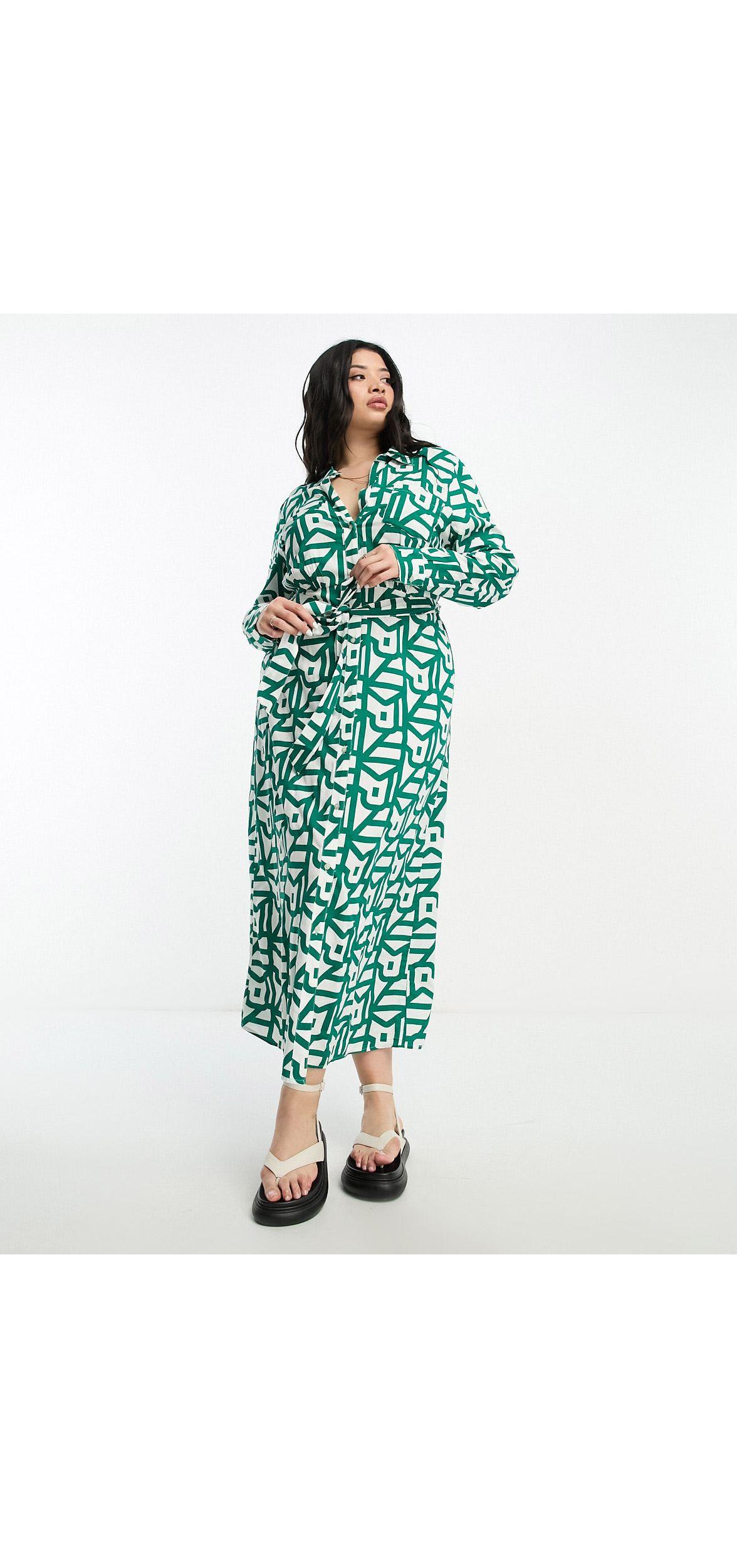 River Island Geo Print Midi Shirt Dress In Green Lyst Uk